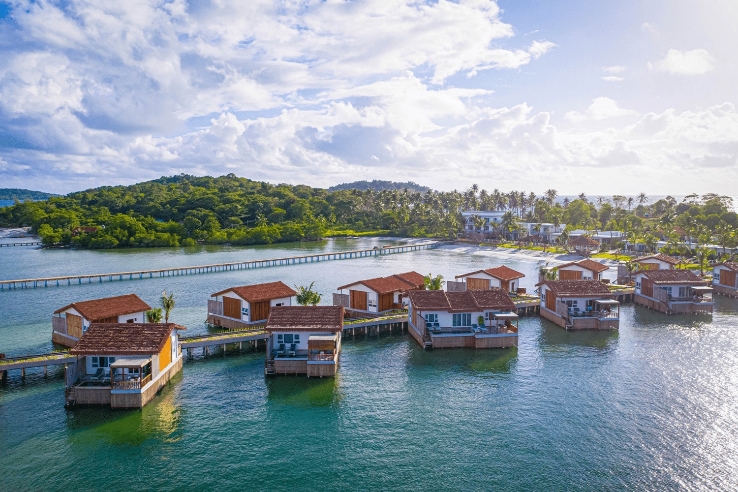 Pure adventure awaits you with our 109 m2, 1-bedroom Elite Villa at Koh Apikjun Resort. This spacious overwater villa boasts modern decor and features a large, open living room area perfect for relaxing in style.
